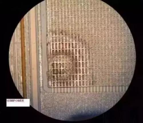 可能我們經常要求器件生產廠家對我們電源板上的MOSFET進行失效分析,大多數廠家都僅僅給一個EAS.EOS之類的結論,那么到底我們怎么區分是否是雪崩失效呢,下面是一張經過雪崩測試失效的器件圖,我們可以進行對比從而確定是否是雪崩失效。
