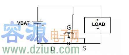 正確連接時(shí):剛上電,MOS管的寄生二極管導(dǎo)通,電源與負(fù)載形成回路,所以S極電位就是VBAT-0.6V,而G極電位是0V,PMOS管導(dǎo)通,從D流向S的電流把二極管短路。