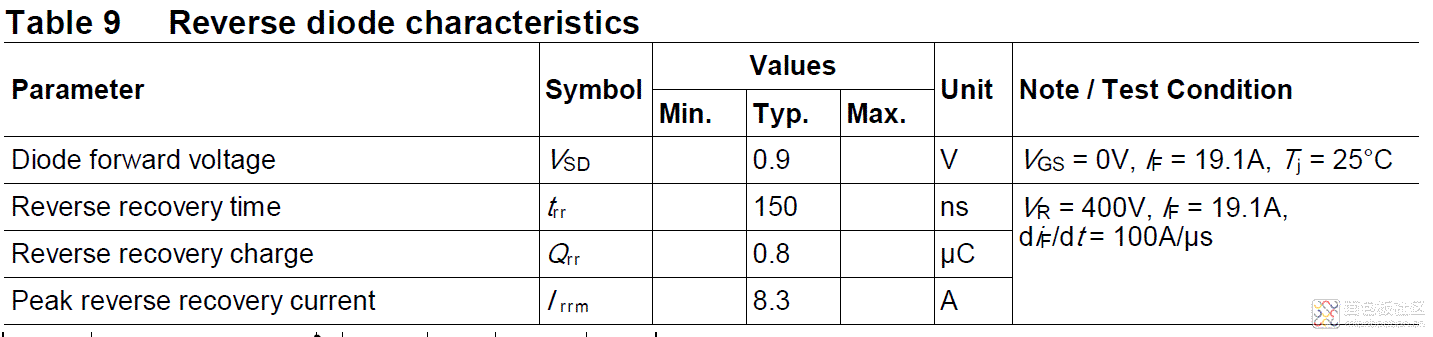 高速下,二極管也不是理想的,二極管導(dǎo)通后,PN節(jié)中充滿了電子和空穴,當(dāng)瞬間反向加電的時(shí)候,需要時(shí)間恢復(fù)截止,這個(gè)類(lèi)似一扇門(mén)打開(kāi)了,需要時(shí)間關(guān)上,但在高速下,這個(gè)關(guān)上的時(shí)間太長(zhǎng),就會(huì)導(dǎo)致H橋上下管子導(dǎo)通而燒壞。所以在高速應(yīng)用中,直接因?yàn)镸OS管工藝寄生的二極管的反向恢復(fù)時(shí)間太長(zhǎng),所以需要用特殊的工藝制作實(shí)現(xiàn)高速的內(nèi)置二極管,但哪怕特殊工藝制作的,其性能也達(dá)不到獨(dú)立的高速二極管性能,只是比原MOS管寄生的指標(biāo)強(qiáng)一些而已,但已經(jīng)滿足大部分軟開(kāi)關(guān)的需求了,500KHz下沒(méi)問(wèn)題。比如Infineon的C6系列,后綴帶CFD的管子,內(nèi)部的二極管就是高速的。