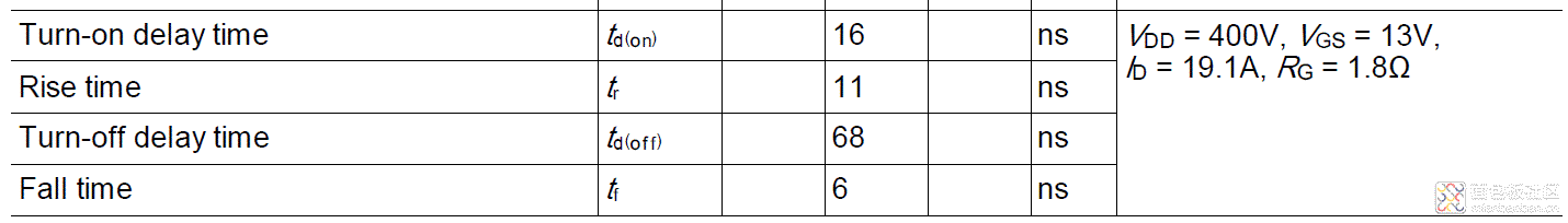 上圖四項(xiàng)指標(biāo),第一項(xiàng)是導(dǎo)通延時(shí)時(shí)間,第二項(xiàng)是上升時(shí)間,第三項(xiàng)是關(guān)閉延時(shí)時(shí)間,第四項(xiàng)是下降時(shí)間。定義如下圖: