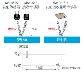 距離可以通過測量超聲波反射時間來計算。由于不受顏色的影響,因此透明玻璃和亞克力也可以作為反射勿進行識別。
