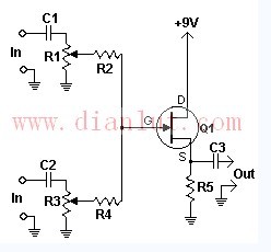 本電路混合成一個通道(如單聲道立體聲成)兩個或更多的頻道。該電路可以組合任意數(shù)量的幾個頻道。 :