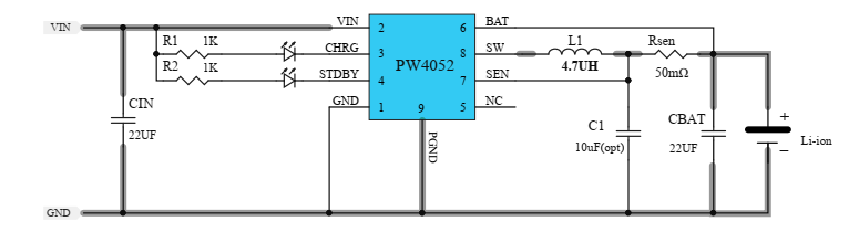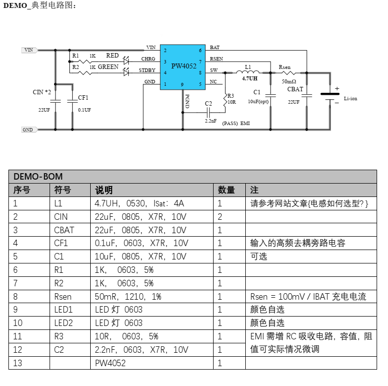 PW4052 是一顆適用于單節(jié)鋰電池的、具有恒壓/恒流充電模式的充電管理 IC。該芯片采用開關(guān)型的工作模式, 能夠?yàn)閱喂?jié)鋰電池提供快速、 高效且簡(jiǎn)單的充電管理解決方案。