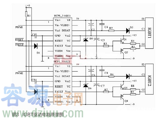 本文針對上述問題設計了一種IGBT驅動電路,不僅具備可靠的過流軟關斷功能,而且故障保護響應及時,不受主控程序運行時間延滯的影響。