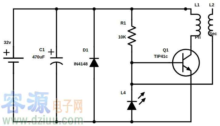 100μF或更高的C1有助于產生更大的火花。與470μF相比差別不大。