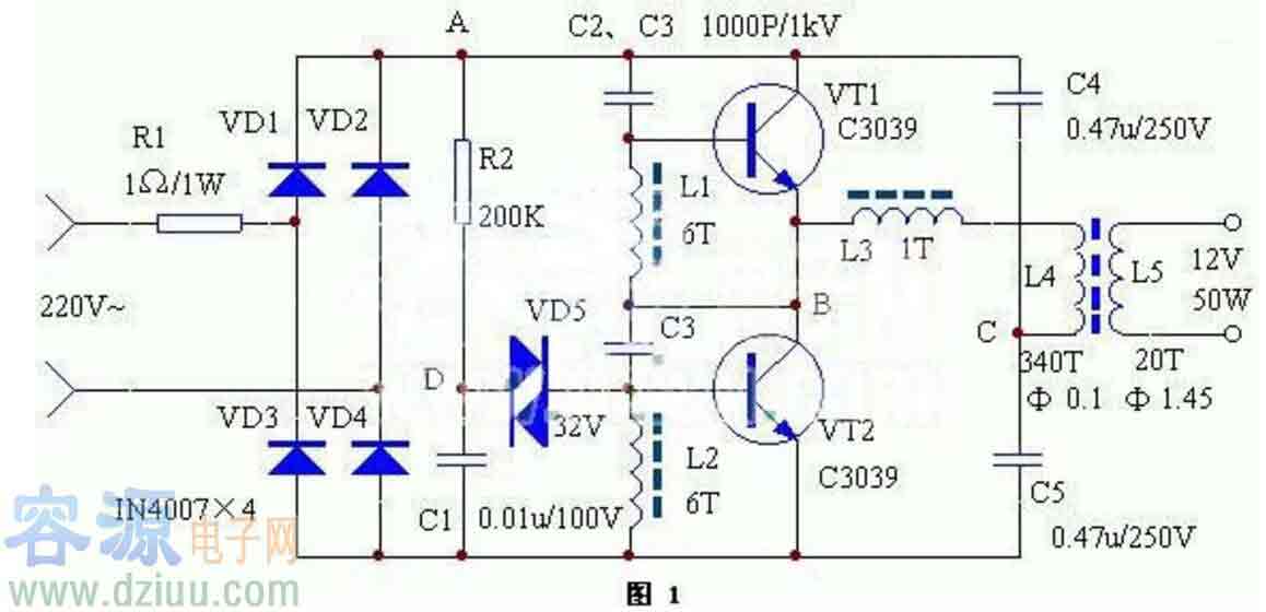 簡易大功率電子變壓器制作 介紹的電子變壓器克服了傳統硅鋼片變壓器體積、重量大、效率低、價格高的缺點,電路成熟,性能穩定。 本電子變壓器工作原理與開關電源相似,電路