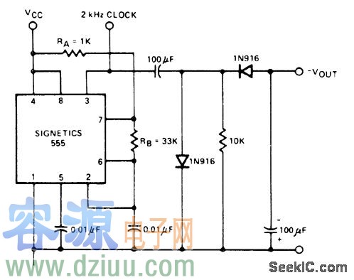 當同時產生2兆赫的信號,負輸出電壓線性追蹤直流輸入電壓的時候,該電路用于從正極電源電壓得出負極電源電壓,但是幅度是大約低于3V。電流不提供調節。—“賽格尼模擬數據手冊” 賽格尼公