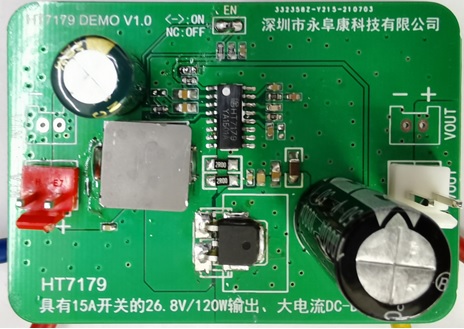 深圳市永阜康科技有限公司針對大功率的DC-DC升壓應用需求,推廣一款集成15A開關管的26.8V、120W輸出、大電流非同步DC-DC升壓IC-HT7179。HT7179采用獨到的電路研發技術以及先進的半導體工藝,重載時高達93%以上的工作效率,無需外加散熱器,升壓到26.8V,可穩定輸出120W。