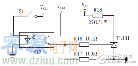 基于TL431的下均衡電路如圖3所示。當開關斷開時,由于光耦817前級沒有開通,因此光耦后級電路也就無法工作,電池工作在正常的放電狀態;當開關閉合時,后級光耦隨前級光耦的開通也相繼開通,電路通過功耗電阻R18耗能來降低電池電壓直到保護芯片送出低電平給保護芯片,迫使電池電壓穩定在其下限限制電壓Vmin,從而達到下均衡的目的。