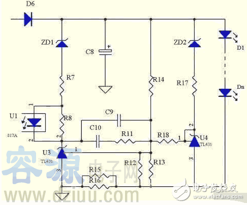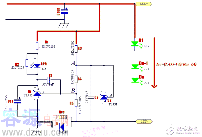 6、二個TL431組成的LED恒流電路圖及原理分析