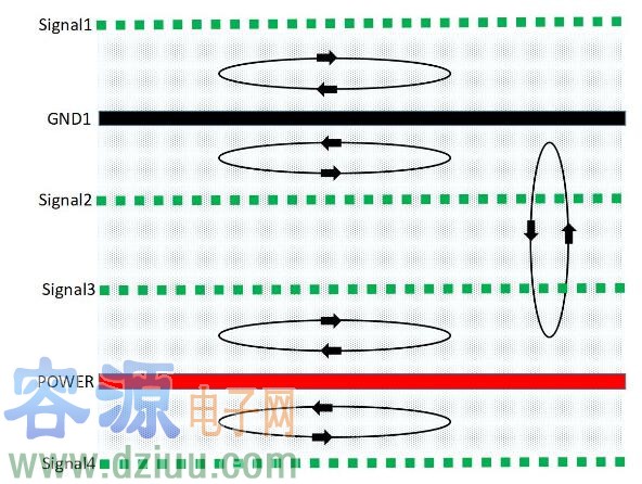 。1)由于信號層與回流參考平面相鄰,S1、S2、S3相鄰地平面,有最佳的磁通抵消效果,優選布線層S2,其次S3、S1。