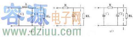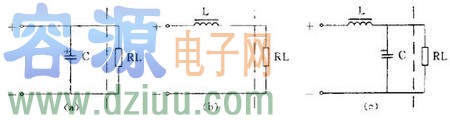 用 1 個電感和 1 個電容組成的濾波電路因為象一個倒寫的字母“ L ”,被稱為 L 型,見上圖(c)。用 1 個電感和 2 個電容的濾波電路因為象字母“ π ”,被稱為 π 型,見上圖(d),這是濾波效果較好的電路。