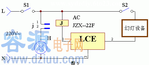 該裝置的應用電路工作原理見下圖。在放映幻燈或電影、錄像時,往往要將室內的照明燈熄滅。放映結束時,又要馬上將電燈點亮,利用LCE模塊可能很方便地實現這種自動轉換。