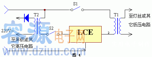 該裝置的應用電路工作原理見下圖。在一些由真空管組成的電子設備或其它某種設備中,對于幾種電源電壓,如高壓、低壓需按一定的順序啟動。如果一時疏忽,可能會誤操作。而利用LCE模塊則可以使這個問題迎刃而解。T1是低壓變壓器,它的初級線圈串聯在LCE的②腳中;T2是高壓變壓器,這的初級線圈串聯在LCE的①腳中。正常啟動的順序應是:先按下開關S1,過一會兒,讓真空管的燈絲預熱后,再按動開關S2。如果其操作順序相反,先按動開關S2,其電路是不會工作的,這樣就能確保操作程序的正確性。