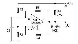 不難看出,當(dāng)輸出狀態(tài)一旦轉(zhuǎn)換后,只要在跳變電壓值附近的干擾不超過ΔU之值,輸出電壓的值就將是穩(wěn)定的。但隨之而來的是分辨率降低。因?yàn)閷?duì)遲滯比較器來說,它不能分辨差別小于ΔU的兩個(gè)輸入電壓值。遲滯比較器加有正反饋可以加快比較器的響應(yīng)速度,這是它的一個(gè)優(yōu)點(diǎn)。除此之外,由于遲滯比較器加的正反饋很強(qiáng),遠(yuǎn)比電路中的寄生耦合強(qiáng)得多,故遲滯比較器還可免除由于電路寄生耦合而產(chǎn)生的自激振蕩。