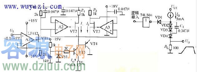 圖3為某儀器中過熱檢測保護電路。它用單電源供電,1/4LM339的反相輸入端加一個固定的參考電壓,它的值取決于R1于R2。UR=R2/(R1+R