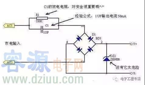 將交流市電轉換為低壓直流的常規方法是采用變壓器降壓后再整流濾波,當受體積和成本等因素的限制時,最簡單實用的方法就是采用電容降壓式電源。