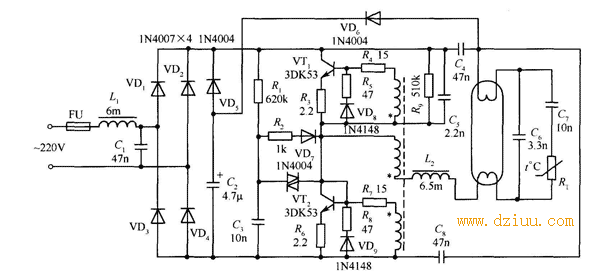 日光燈電子整流器電路工作原理及電路圖