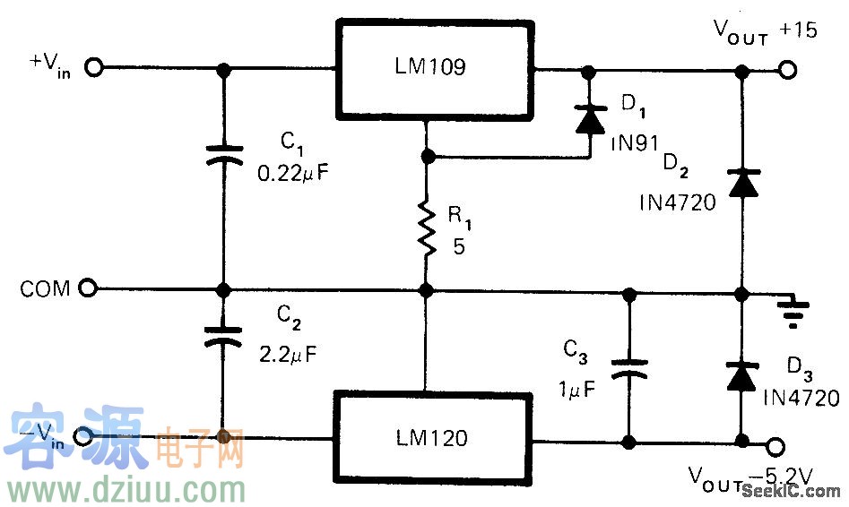 LM109\LM120雙-5.2V和+15V穩壓電路