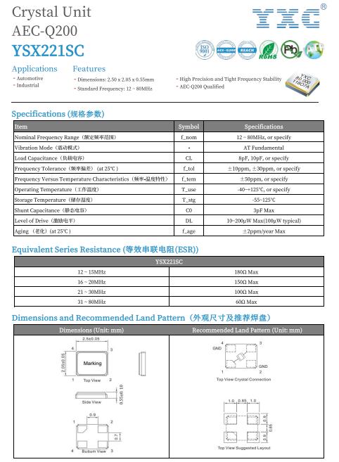 YXC晶振YSX221SC系列,頻率為16.384MHz,工作溫度-40~125℃,以下為YSX221SC系列規(guī)格書。