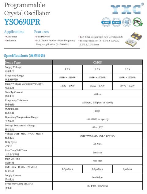 YXC可編程晶振,頻率1~200MHz,精確至小數點后六位,可