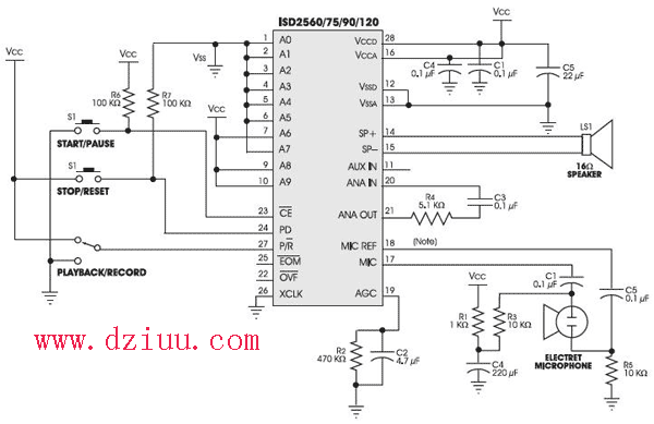 ISD2560P/ISD2575/ISD2590/ISD25120應用電路圖