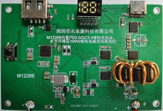 深圳市永阜康科技有限公司現(xiàn)在大力推廣一顆內(nèi)置PD3.0/QC3.0等主流快充協(xié)議、3-6多節(jié)鋰電池移動電源雙向100W快充IC-M12266,配合極簡的外圍電路,即可實現(xiàn)常見便攜電子設備的Type-C快充需求。