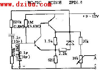 ,頻率為6.5Hz。如采用圖中括弧內的數值,頻率可低至0.01Hz。振蕩器吸取的電流約為3mA。 <<版權聲明:本文由容源電子網(www_dziuu_com)整理提供,部分內容來源于網絡,如有侵犯到你的權利請與我們聯系更正!
