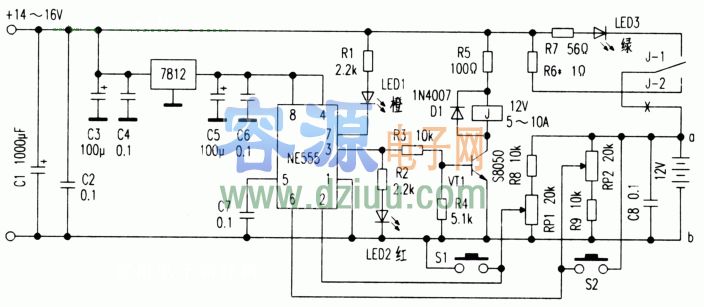 為使電路運行準確安全,應(yīng)注意充電回路和控制回路的分開走線問題。充電回路電流大,應(yīng)選用短而粗的導線連接;控制回路應(yīng)盡量不與充電回路“重合”。在制作印制板時,應(yīng)盡量使NE555的⑤腳、①)腳與取樣電路的“地”靠近,地線應(yīng)寬而粗。