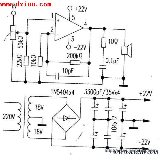 電路的制作。手頭有兩只TDA2030A,雙電源時輸出18W功率,電路如圖。