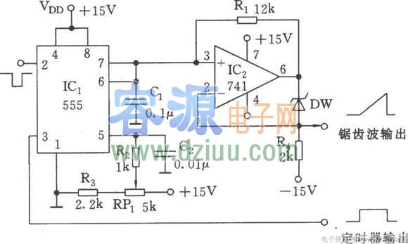 555構(gòu)成單端雙穩(wěn)態(tài)電路圖