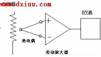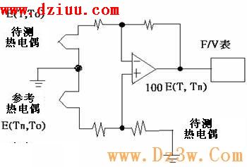 電表接線與熱電偶接線的熱電偶接面電壓由“差動放大器”共模增益抵銷