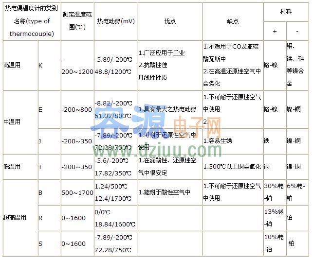 熱電偶的特性: