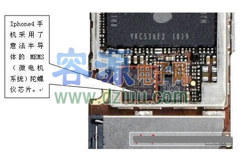 Iphone 4手機采用了意法半導體的MEMS(微電機系統)陀螺儀芯片,芯片內部包含有一塊微型磁性體,可以在手機進行旋轉運動時產生的科里奧力作用下向X,Y,Z三個方向發生位移,