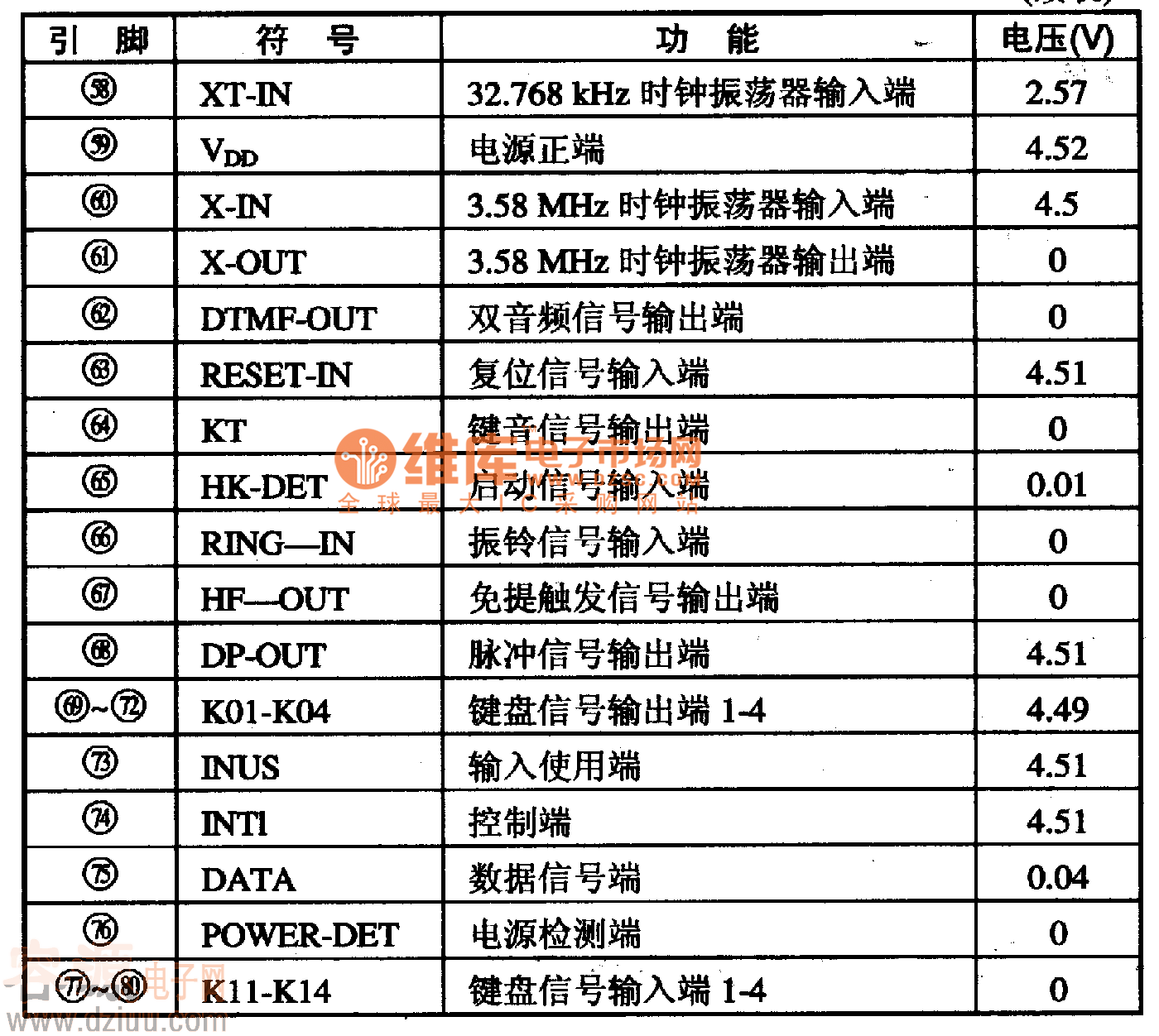 LB10427A集成電路采用80腳軟封裝,其集成電路的引腳功能及數(shù)據(jù)見表1所列。