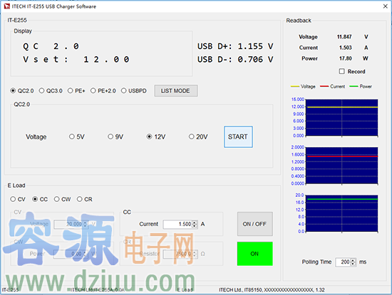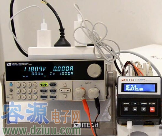 IT-E255A的輸入口有Mini-USB和TYPE-C2個接口。適配器插入口,IT-E255A連上電子負載,測試就可以開始嘍。