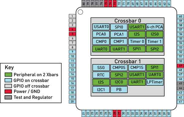 圖1:Silicon Labs新推出的Precision32系列專利Crossbar技術幾乎可以讓任何外設使用任何引腳。