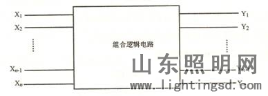 組合邏輯電路的組成方框圖如圖1所示。它有n個輸入端,m個輸出端,Xi為輸入邏輯變量,Yi為輸出邏輯變量。輸出變量Y1,Y2,...,Ym是輸入變量X1、X2,…,Xn的函數,即: