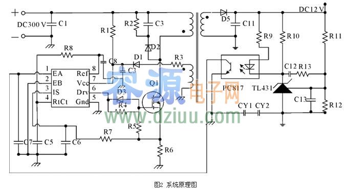 , 電路由主電路、控制電路、啟動電路和反饋電路4 部分組成。 <<版權聲明:本文由容源電子網(www_dziuu_com)整理提供,部分內容來源于網絡,如有侵犯到你的權利請與我們聯系更正。》
