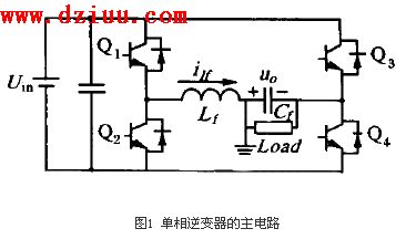 單相逆變器采用全橋電路, 通過三態(tài)滯環(huán)控制方式在兩橋臂的中點(diǎn)得到一系列脈沖調(diào)制波,