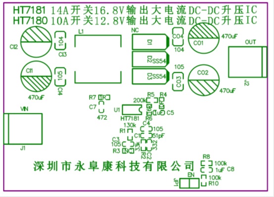 但是輸出端如果需要輸出大電流負載(例如:輸出電流大于 200mA),為了提高工作效率,建議使用較大一點的電感。