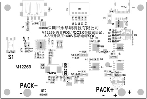 深圳市永阜康科技有限公司現在順勢推廣一顆支持PD3.1/QC3.0等主流快充協議、3-8節升降壓型140W鋰電充放電管理SOC-M12269。