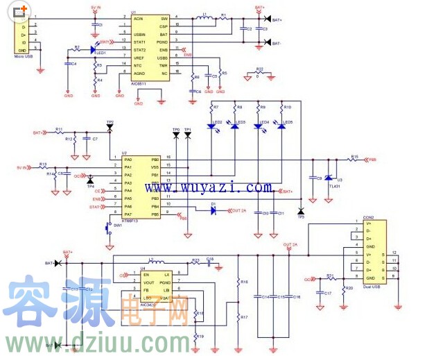 移動(dòng)電源電路設(shè)計(jì)的原理圖
