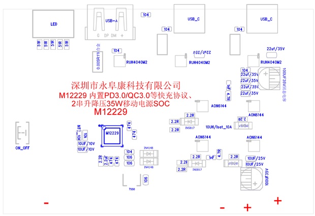 深圳市永阜康科技有限公司現(xiàn)在大力推廣一顆內(nèi)置PD3.0/QC3.0等主流快充協(xié)議、3-6多節(jié)鋰電池移動(dòng)電源雙向100W快充IC-M12266,配合極簡(jiǎn)的外圍電路,即可實(shí)現(xiàn)常見(jiàn)便攜電子設(shè)備的Type-C快充需求。