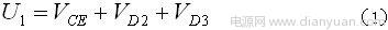 ,通過(guò)檢測(cè)IGBT的通態(tài)飽和壓降(即1腳的電壓U1)來(lái)判斷是否過(guò)流,當(dāng)檢測(cè)出IGBT的柵極和源極同為高電平時(shí)就判斷為過(guò)流,此時(shí)降低柵極驅(qū)動(dòng)電壓。并通過(guò)光耦向控制電路發(fā)出故障信號(hào)。IGBT正常工作時(shí)的通態(tài)壓降一般為2.5V~3.0V。而M57962AL的過(guò)流檢測(cè)端的閥值電壓Ucs設(shè)計(jì)為10V。如此高的閥值電壓對(duì)諸如橋臂直通、負(fù)載短路等情況有一定的保護(hù)作用。但動(dòng)作非常遲緩,甚至起不到保護(hù)作用。因此必須降低過(guò)流保護(hù)閥值,方法是在檢測(cè)端串聯(lián)一穩(wěn)壓管D2,通過(guò)實(shí)驗(yàn)來(lái)確定穩(wěn)壓管的穩(wěn)壓值。它們之間滿足如下關(guān)系: