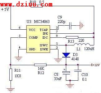 介紹:從電路得知,輸入電壓為DC5V,可以直接轉換為DC12V輸出,對于