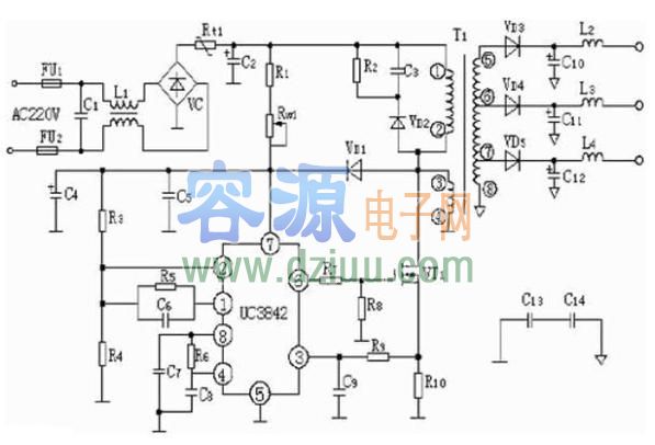 接輸出電壓取樣信號,也稱反饋信號。 <<版權聲明:本文由容源電子網(wǎng)(www_dziuu_com)整理提供,部分內(nèi)容來源于網(wǎng)絡,如有侵犯到你的權利請與我們聯(lián)系更正。》