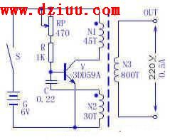 6V轉(zhuǎn)AC220V逆變器電路