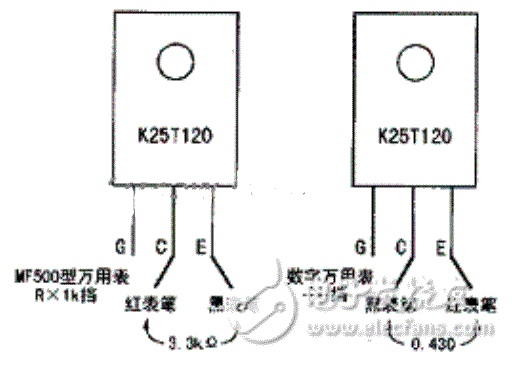 電磁爐IGBT管好壞的檢測(cè)方法IGBT管的好壞可用指針萬(wàn)用表的Rxlk擋來(lái)檢測(cè),或用數(shù)字萬(wàn)用表的“二極管”擋來(lái)測(cè)量PN結(jié)正向壓降進(jìn)行判斷。檢測(cè)前先將IGBT管三只引腳短