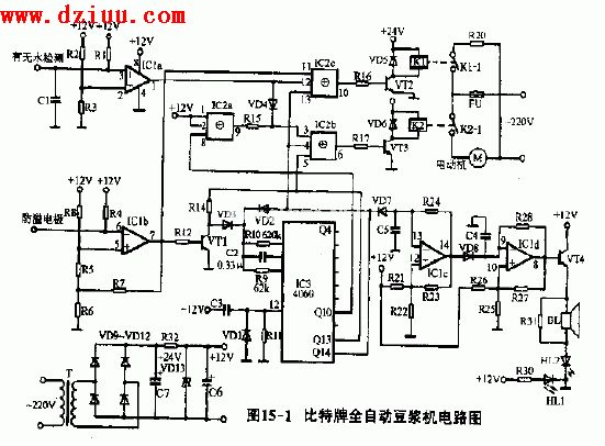 下面介紹全自動豆漿機電路,本電路基于4060集成電路,為廣大電子電器維修工作者提供維修數據,我們會不斷提供更新的電路圖出來,也歡迎大家為容源電子網提供電路圖,本文由www.mnu8.com整理提供,部分內容來源于網絡,如有侵犯到你的權利請與我們聯系更正。